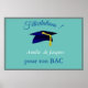 Boné de formatura azul em fundo branco leve e quadro de cinza - poster de parabéns modernos na moda em francês para graduações do ensino médio - fácil personalizar este item agora com um nome. Você pode adicionar mais texto/foto, etc.