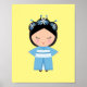 Poster Boneca Japonesa de Kimono Azul
