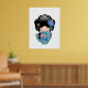 Póster Boneca Keiko Kokeshi - Rapariga Kimono Geisha Azul