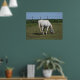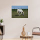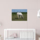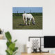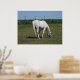 Poster Bonito Cavalo Branco Comendo em Campo de Fazenda