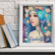 Poster personalizada com arte de conto de fadas. Uma fada Bonito com cabelo azul e flores no cabelo e olhos azuis. Fantasy art ai art. conteúdo generativo