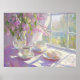Essa pintura quente e convidativa captura um momento confortável ao lado da janela, onde duas delicadas taquiches e discos sentam-se ao lado de uma placa de piadas tentadoras. Filtra-se luz natural suave, iluminando a cena e realçando a beleza suave de um vaso cheio de flores rosa frescas. A composição convida você a pausar e saborear prazeres simples — conforto, companheirismo e a alegria tranquila encontrada nos momentos do dia a dia. É uma celebração serena de calor e conexão, perfeita para qualquer um que aprecie pausas pacíficas e reuniões de coração.
