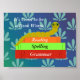 Um poster divertido para uma sala de aula ou uma casa. Um verme-livro castanho vestindo óculos em uma pilha de livros coloridos. Um fundo azul com uma mensagem de excelente. Personalizar conforme desejado.