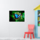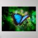 Uma fotografia espantosa de uma Borboleta Azul Morpho (Morpho peleides) empoleirada em algumas folhas.