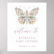 Este belo poster de sinal de boas-vindas do chá de fraldas apresenta uma borboleta floral desenhada pela mão na lavanda, rosa-pincelado, amarelo-ouro e verde. O texto legante diz: "Bem-vindo" e modelos de texto são incluídos para personalização simples. Escolha entre uma variedade de dimensões de poster - as opções impressas e os downloads instantâneos estão disponíveis!