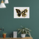 Poster Borboleta Flor Dourada com Orquídea Preta