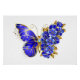 Borboleta de flores cinza, azul, safira, espumante com asa decorada com flores preciosos azuis com folhas de ouro sobre fundo branco.