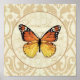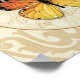 © Lisa Audit/Wild Apple. Uma imagem vintage de uma borboleta laranja. A imagem está rodeada de impressões de cor castanho brando com a dentro de borboleta um círculo branco. Há também texto que pode ser visto na imagem.