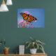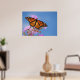 Bela borboleta Monarca se alimentando de uma flor rosa de colza Myrtle contra o céu azul - uma bela poster para dar um fôlego na sua parede!