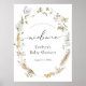 Bem-vindos convidados ao seu chá de fraldas com este belo poster, com capim de aquarela e buquês florais azuis secos com borboletas. Adicione o nome da mãe e a data do chá usando os campos fornecidos.