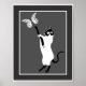 Gato siamês bonito brincando com uma borboleta feita em impressão de poster branco e preto.
