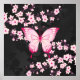 Poster Borboleta Preta Rosa E Flores De Cereja