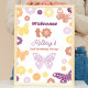 Bem-vindos aos convidados do seu partido com o nosso Sinal de Boas-vindas de Aniversário da Borboleta Retro. Apresentando a mesma borboleta e designs de flores divertidas que nossos convites de festas e suprimentos, este sinal de boas-vindas, fofo e personalizado pode ser ordenado em um tamanho comum e enquadrado e colocado na sua mesa de entrada para receber convidados para o evento! Ou simplesmente faça o download e a impressão em casa para uma decoração fácil do DIY!