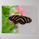 Bela borboleta que anseia por zebra fica em flor desbotada.