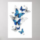 Borboletas azuis voadoras morfo e borboletas brancas em um fundo de abstrato leve. Morpho. Design com borboletas azuis morfo.