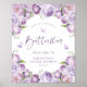 Bem-vindos convidados com elegância usando este sinal de boas-vindas ao chá de panela roxo, enfeitado com borboletas graciosas e sotaques florais suaves. Perfeito para festas de jardim, eventos temáticos de lavanda, ou chás de panela modernos, ele estabelece um tom sereno e romântico como amigos e familiares se reúnem para celebrar a noiva-a-ser.