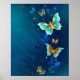 Ouro voador, borboleta de joias em fundo textural azul. Design com borboletas.