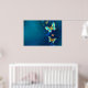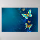 Ouro voador, borboleta de joias em fundo textural azul. Design com borboletas.