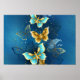Composição de borboletas voadoras, joias, douradas e escuras em um fundo texturizado de joias. Borboleta dourada.