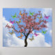 Árvore cor-de-rosa bonito e borboletas coloridas contra um céu azul com nuvens brancas peludas design por Susan. Clique em Personalizar para adicionar texto e personalizar.