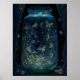 Poster de parede apresenta arte digital gerada por IA encantada de um vidro cheio de borboletas luminescentes mágicas.