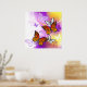 Laranja, borboletas monarcas detalhadas sobre luz, roxo, pitoresco, fundo pintado.