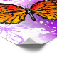 Laranja, borboletas monarcas detalhadas sobre luz, roxo, pitoresco, fundo pintado.