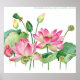 Poster Borda de Aquarela do Lotus Rosa