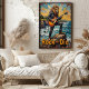 Esta pintura impressionante captura um leão majestoso, adornada com óculos de sol e uma jaqueta de couro, colocando seu hino rochoso em um violão elétrico. Está empoleirado com confiança numa rocha robusta na borda do oceano, com ondas de choque e um dramático céu por pôr do sol ao fundo. O uso de pinceladas ousadas e texturizadas pelo artista enfatiza a energia bruta da cena e a atitude de "Rock or Die", dando vida a este concerto inesperado.