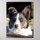 Um belo cão fazenda collie na fronteira foi apanhado escondido atrás de um trailer.