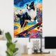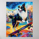 Um lindo skate de collie de fronteira colorida AI gerou arte