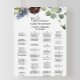 Este quadro de assentos florais e verdes é perfeito para um casamento no inverno. O elegante design apresenta marinho de aquarela, cor-de-rosa-pincelada e flores de sombra de vinho com detalhes artísticos lápis. Este sinal pode ser usado para organizar seus convidados em ordem alfabética ou por número de tabela. Esta poster de casamento inclui espaço suficiente para cerca de 150 convidados de casamento. Deixe espaço para mais (ou menos) clicando no botão personalizar e aumente ou diminua o tamanho da fonte. Personalize este sinal com os nomes da noiva e do noivo e a data.
