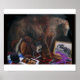 Aqui está Boris, o cão-menino mais doce de todos os tempos, com uma vida estática de itens temáticos equinos. Há uma sela, botas, fitas, uma escova, um boné de caça, e um livro aberto a uma das minhas pinturas favoritas pelo pintor de cavalo excelente, Sir Alfred Munnings, entre outras coisas. Os donos desta pintura também são donos de um filho de Boris, um menino bonito chamado Basil! Sinta-se livre para redimensionar esta imagem se quiser mais ou menos borda clicando na opção design e arrastando um canto.