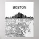 A linha do horizonte da cidade de Boston, Massachusetts, incluindo marcos com o mapa de Boston embaixo.