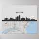 Poster Boston Massachusetts City Skyline com Mapa