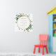 Este sinal de boas-vindas do casamento mostra a cor d'água do eucalipto verde, folhas verdes com um quadro circular circular dourado. Para personalização mais avançada deste design, clique no link "Personalizar mais". Itens correspondentes também estão disponíveis.