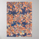 Um design botânico ousado de rosetas florais em uma rica paleta de cor de outono de blues e bege.