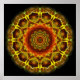 Caleidoscópio atordoante em cor amarela ouro e âmbar queimado. A combinação de cores faz com que essa peça tenha muita profundidade enquanto é design plano. Enquanto um caleidoscópio é um padrão de formas e cores em constante mudança, esta é uma versão digital estática disso. Intrair os padrões que se repetem num quadro circular.