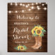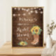 Placa de Sinalização de Botas de Cowgirl Girassóis Rústicos Luzes Florais Chá de Noiva. (1) O tamanho padrão é 20 x 25 cm, você pode alterá-lo para um tamanho maior. (1) Para personalização adicional, clique no link "personalizar ainda mais" e use nossa ferramenta de design para modificar este modelo. (2) Se precisar de ajuda ou itens correspondentes, entre em contato comigo.