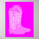 Você gosta de arte temática ocidental? Este poster apresenta um par de botas de cowboy com estrelas feitas em vários tons de rosa sobre um fundo rosa.
