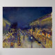 Artista Camille Pissarro (1830-1903) Título The Boulevard Montmartre at Night Date 1897 Título Boulevard Montmartre Object painting Genre cityscape Descrição Inglesa: No final da sua vida, Pissarro voltou-se cada vez mais para a representação das cenas das cidades em Paris, Rouen, Dieppe, Le Havre e Londres, pintadas, principalmente as janelas de hotéis e apartamentos. Em fevereiro de 1897, ocupou um quarto em Paris no Hôtel de Russie, na esquina do Boulevard des Italiens e do Rue Drouot, e produziu uma série de pinturas do Boulevard Montmartre em diferentes épocas do dia. Pissarro pode ter sido influenciado pela série de pinturas em que Monet se envolveu no momento, e pelas cenas urbanas anteriores de Manet. Esta pintura é a única cena noturna desta série, e é uma renderização intensa do jogo de luzes nas ruas escuras e úmidas. Pissarro não assinou nem exibiu durante sua vida.