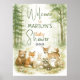 Entra numa floresta encantadora cheia de amor e riso. Este design ao estilo aquarela apresenta um encantador encontro de animais bebês da floresta — como fawns, raposas, guaxinins, filhotes de ursos, corujas, coelhos e ouriços — aninhados entre samambaias, cogumelos e árvores altas. Com um cenário de floresta sonhadora e tons naturais aconchegantes, essa design cria uma cena tenra, de um livro de histórias perfeita para celebrar a chegada de um pequeno. É uma maneira gentil e encantadora de receber seu bebê no mundo.