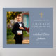 Rapaz Foto Primeira Comunhão Dusty Blue Poster. Parte do Pacote de Convite da Primeira Comunhão Dusty Blue Cross Boy com convite, papelaria e acessórios de festa correspondentes disponíveis.