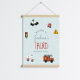 Esta bela placa de boas-vindas de aniversário de meninos azuis apresenta um caminhão de bombeiros, carro de polícia e cartoon de ambulância, e pode ser personalizada com o nome e a idade do seu filho. A decoração perfeita para o evento de aniversário da sua criança.
