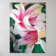 com design de arte original de pintura aquosa de Sacha Grossel, de flores lírios brancas e cor-de-rosa, colocadas sobre um fundo verde escuro. Este design floral é de natureza botânica com cores brilhantes e vibrantes para amantes de flores e lírios em todo o lado.