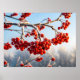 A branch of vibrant red berries covered in frost on a sunny winter day. Rowan berries in the frost