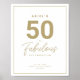 Simples sinal de festa de aniversário branco e dourado "50 e Fabuloso" com tipografia elegante e elegante. Personalize-o facilmente com a idade, o nome, a data e o local da festa.