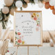 Bridal Shower Welcome Sign featuring colorful floral borders, a honeycomb pattern background and buzzing bees. Customize with your information for the mom to be. Click "click to customize further" to change the font style, size or color.