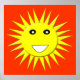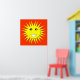 Este brilhante sol amarelo sorridente é garantido para fazer seus filhos sorrirem mesmo nos dias mais miseráveis. Está sobre fundo quente vermelho e tem uma boca sorridente branca e grandes olhos pretos com pupilas brancas. Seria uma adição brilhante a um quarto ou berçário infantil.