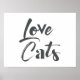 Design gráfico moderno, lúdico e ousado de um ditado "Cats de Amor" em cor de cinza. Tipografia criativa, experimental, legal e moderna.